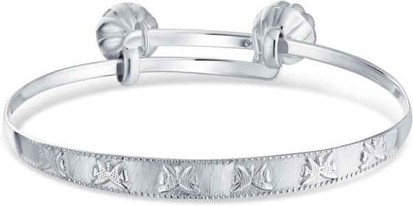 • NATURE JEWELRY – This delightful, . silver women’s bangle bracelet will simply enhance your outfit. Highlighted by a sweet, butterfly motif inscription for a touch of charm with playful, jingle bell, rattle accent. Crafted in lustrous . silver.
