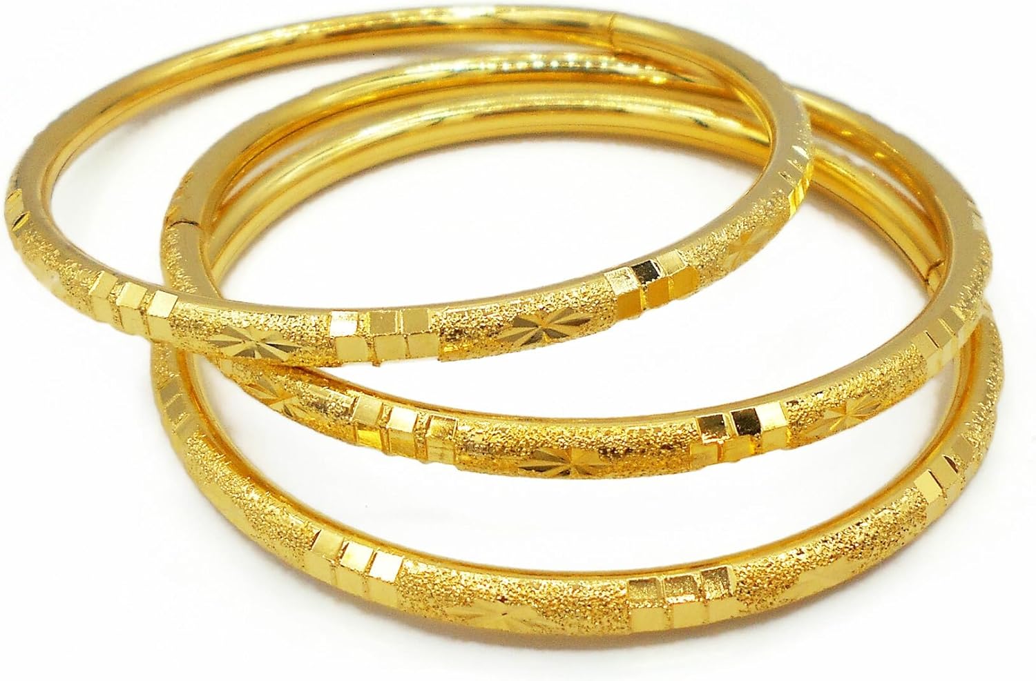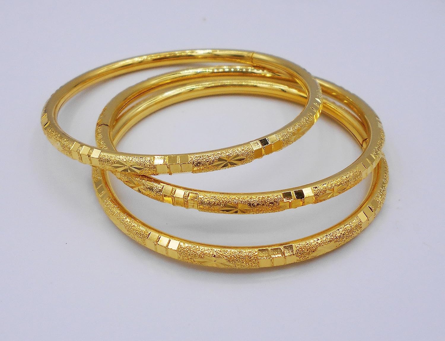 Set of 3 Multiple Bracelets Bangle 18k 22k 23k 24k Thai Baht Yellow Gold Plated for Women From Thailand